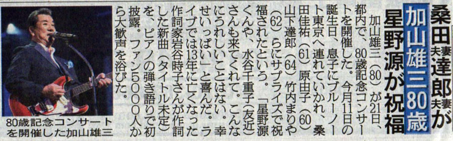 加山雄三80歳 桑田夫妻・達郎夫妻が、星野源が祝福