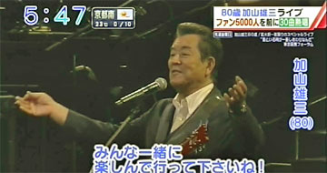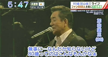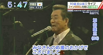 今月11日に80歳の誕生日を迎えた加山雄三さんが 単独ライブを行いました。ファンおよそ5000人を 前に30曲を熱唱。 元気いっぱいの姿を見せてくれました。