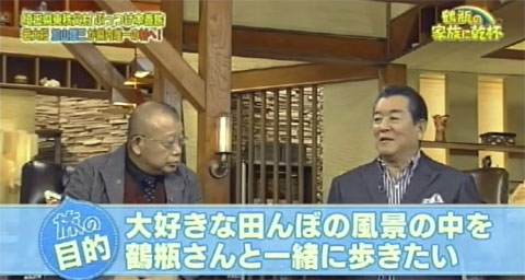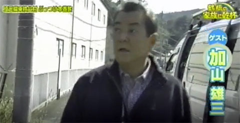 鶴瓶)加山雄三に会えるねんて。和紙の里や。あっ!あそこにいてはる。あれ、違うのん? こんにちは! 高野父)こんにちは。 鶴瓶)きれいにしてはりますね。ここのお宅の方ですか? 高野父)そうです。 鶴瓶)自分でやらはるんですか? 高野父)1時期になると。私が小学校へ行くころから。 鶴瓶)小学校のときから? 高野父)これは私が植えたものなんです。 鶴瓶)今、おいくつ? 高野父)もう80歳になる。 鶴瓶)加山雄三さんと一緒ですやん! 高野父)今!そこを通りました。 鶴瓶)加山さんを探しているんです。 |