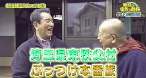 小野)今回は初登場、加山雄三さんをゲストにお迎えしました。 鶴瓶)初登場ですね。 小野)よく出てくださいましたね。 鶴瓶)出たいって、ずっと、思ってたって。 最高じゃない。 小野)何か、浅からぬご縁があるそうではありませんか。 鶴瓶)僕は岩倉具視をやってたでしょ。 小野)その岩倉具視は、実は加山雄三さんの、なんと、ひいひいおじい様でいらっしゃる。 鶴瓶)俺ら中学の時に文化祭で、みんな加山雄三やったからね。 小野)憧れの大スターが埼玉を歩こうとなさったんですね。 鶴瓶)歩いたらいかんよ! 小野)この東秩父村に行きたいと思われたのは、どうしてですか? 僕の子どものころ住んでたところの周りが田んぼで畑が多い。そういうのが原風景になってるん 小野)いったい、どんな旅になったんでしょうか。埼玉県東秩父村が舞台のぶっつけ本番の旅、 |